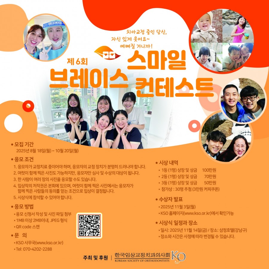 교정전문의 학술단체인 한국임상교정치과의사회(KSO)에서 주최하는 제6회 브레이스스마일 컨테스트에 응모해보세요~